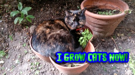 My cat Megara loves sleeping in my (once filled with flowers) plant pots.